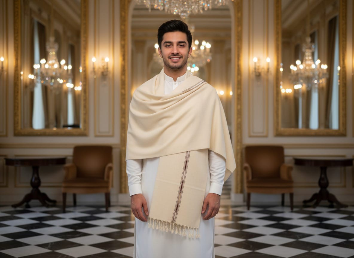 This handsome handwoven shawl is made from 100% pure wool. If you see closely, the shawl has beautiful patterns that distinguish it from ordinary shawls. This is the mastery of artisans at DastKaar