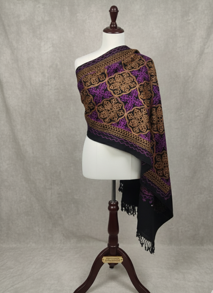 This is soft, feather light hand-embroidered shawl. Hand-woven in Swat with pure wool, it is offered at a very competitive price by DastKaar. It provides elegance and warmth against extreme winter. Material: Wool Handwoven with Love in Swat. Length: 93 Inches Width: 46 Inches
